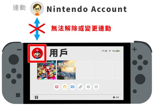 無法解除(回到沒有連動Nintendo Account的狀態)與用戶已完成連動的Nintendo Account,也無法變更為其他Nintendo Account。