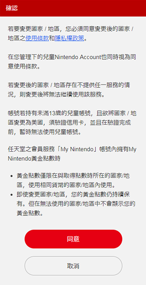 如果已登入帳號但沒有顯示任何按鈕,即有可能這個Nintendo Account已完成同意的手續。即使那樣,如果「兒童帳號」仍然被要求同意,請查閱以下的Q&A。