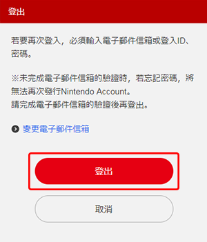 如果有「發送電郵」等畫面重複出現的情況,請嘗試從這個畫面(https://accounts.nintendo.com/logout)登出。如果不能夠登出,請改以家長或監護人的Nintendo Account登入。