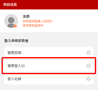 5. 選擇「變更登入ID」