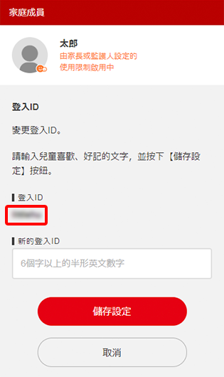 兒童帳號不是使用電郵地址, 而是以「登入ID」登入。如果忘記「登入ID」,請以家長或監護人的Nintendo Account登入,並在設定畫面中的「家庭」中查看。